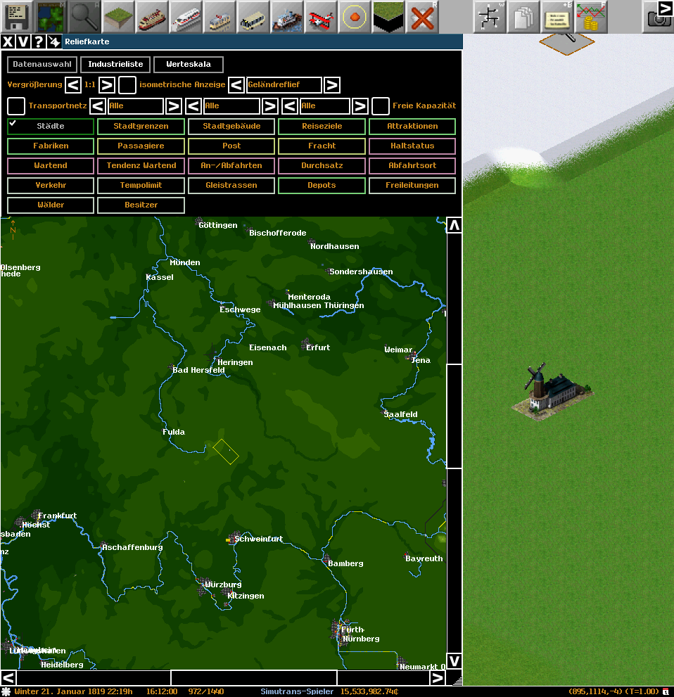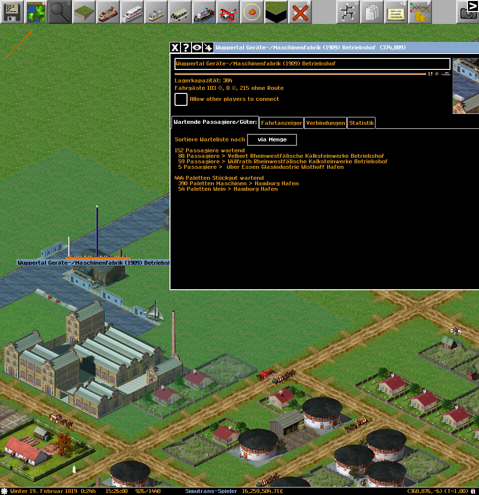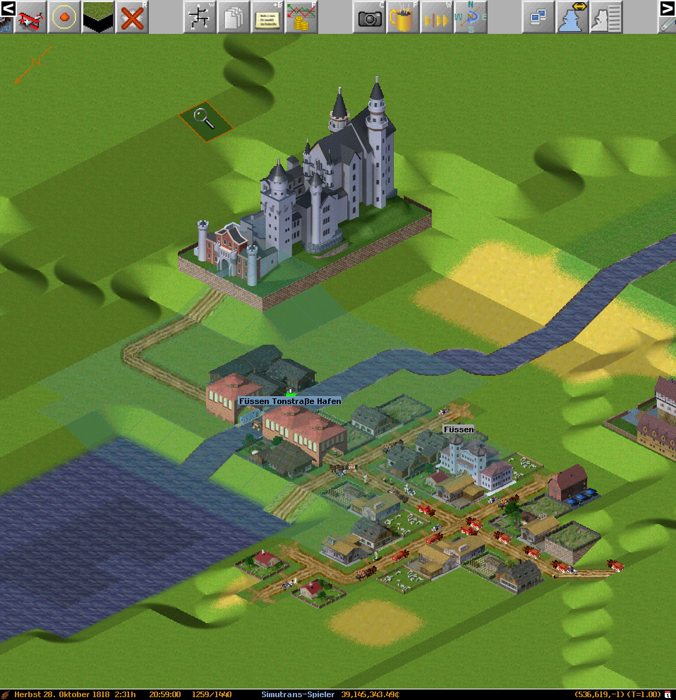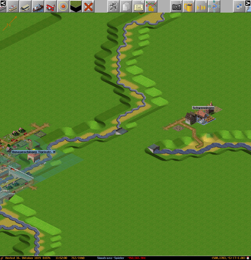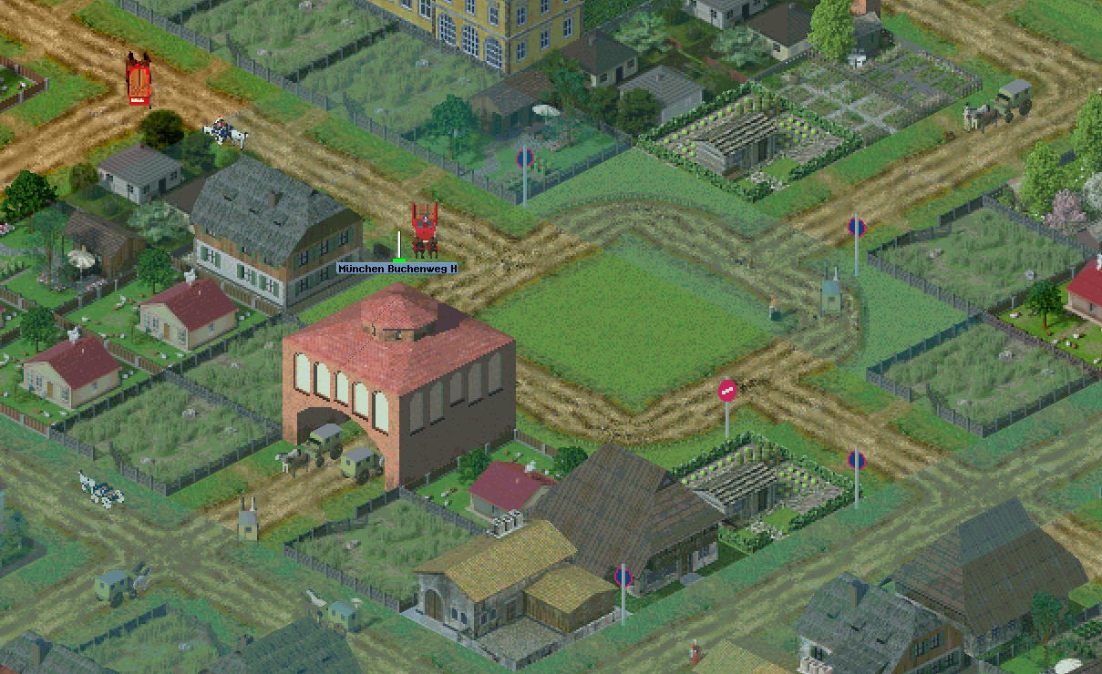 そして、Simutransのルートの性質上、カーブを蛇蝎のごとく嫌うので、折り返したうえで1本前のルートに行く、なんてこともしばしばある。中継点(Wegpunkt)を設けるなどで対応。