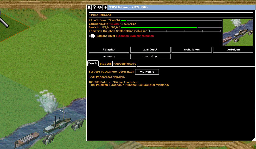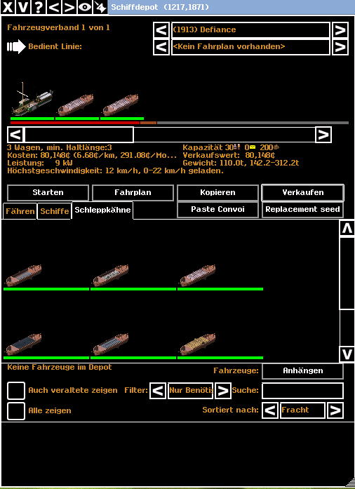 そういえばプロトタイプ蒸気船のDefianceだが、ケージ(Schleppkähne)を曳けることが判明。
