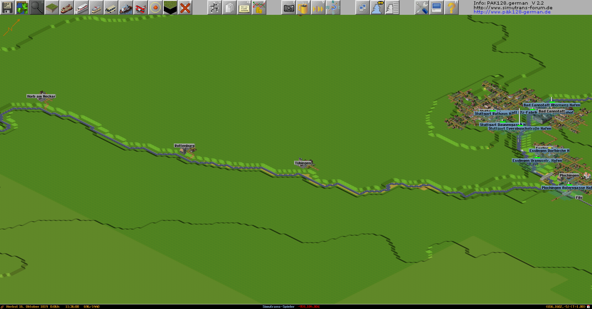 途中、Tübingen、Rottenburg am Necker、Horb am Neckar、Schwenningenの4都市を新設。