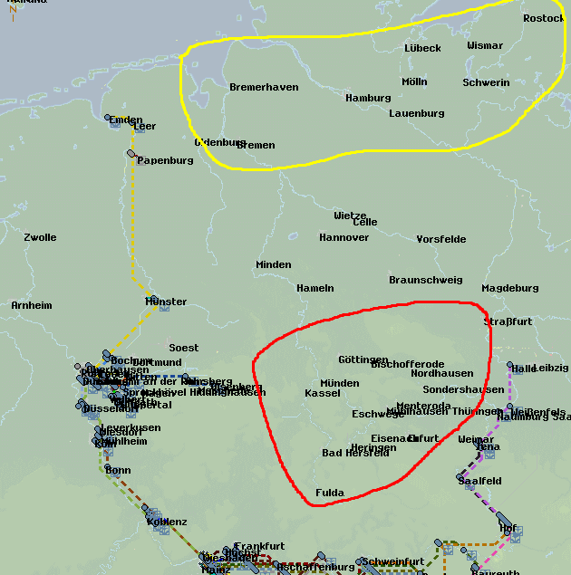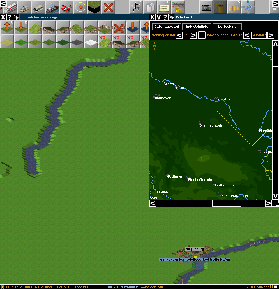 ただ、Magdeburgからミッテルラント運河(Mittellandkanal)をへて、Vorsfelde、さらにはWietzeやBremen方面への接続はできそうだ。史実でもちゃんとつながっているらしい。