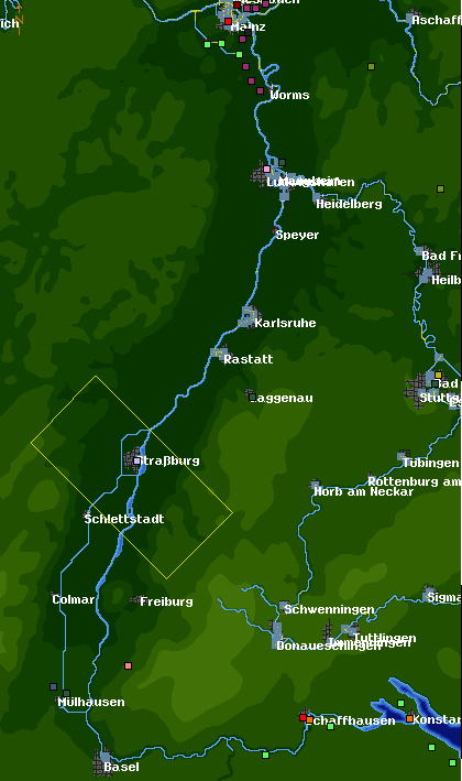 また、イル川(Die Ill/L'Ill)を設置。ゲームの仕様上からStraßburg、Mülhasen(仏:Mulhouse)にはライン川本流に直通するルートも設置した。