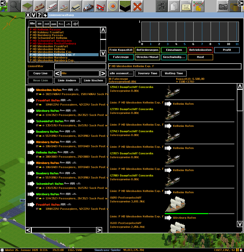 マイン=ドナウ線でも蒸気船の運航を開始。従来の汽船と比較するため、Frankfurtに新たに停車することにした。