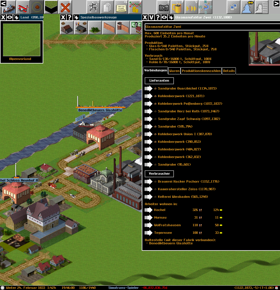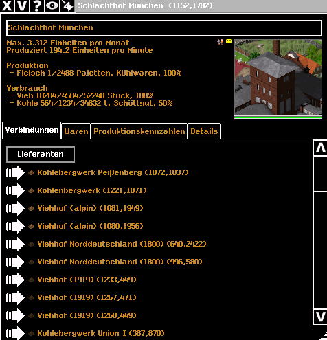 Münchenの精肉工場では石炭が不足しており、求める生産量の半分しか生産できていない(スクショ時点では生産しているが)。