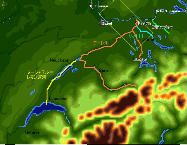 史実だとヌーシャテル止まりの運河は、レマン湖まで伸ばす。