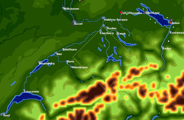(縮尺は違うかもしれないけど、レマン湖やヌーシャテル湖、Baselの都市の位置で比較してほしい)