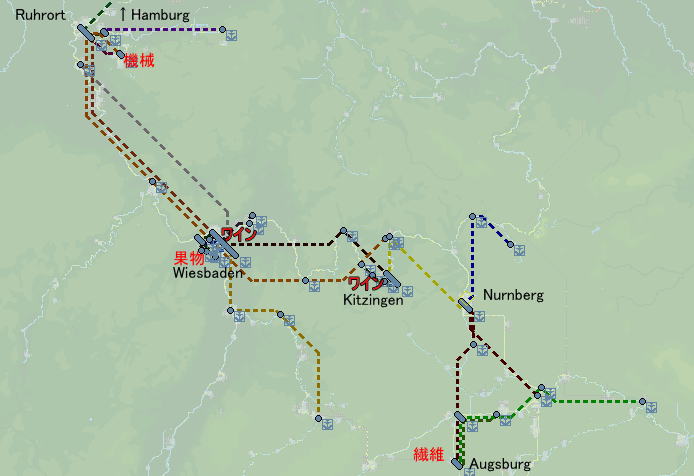 ライン=マイン=ドナウ圏のStückgut網はAugsburgの繊維工場とも接続し、販路を拡大した。