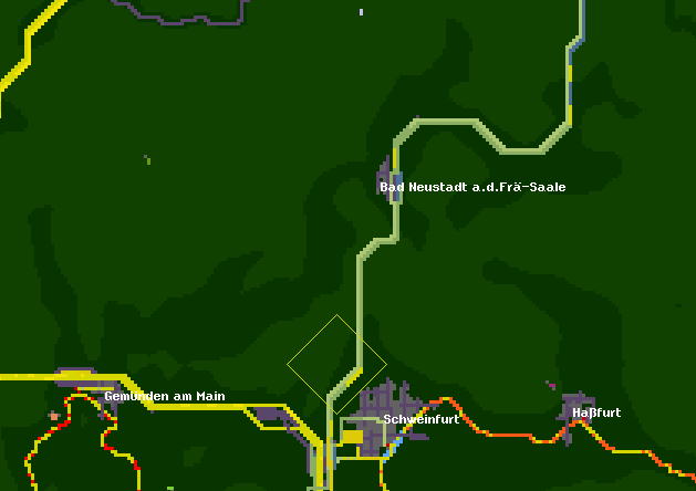 ちなみにFränkische-Saale川(3格anからのderなんで女性名詞ですね、はい)はGemündenから分岐して東に流れるのですが、面倒なので省略。